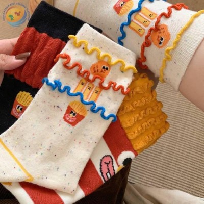 韩国东大门汉堡薯条中筒袜子女搞怪袜纯棉