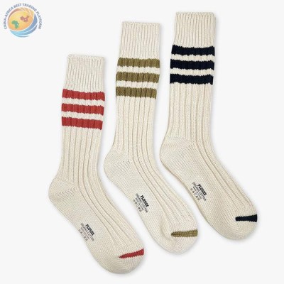 日系三条杠粗线翻口堆堆袜中性精梳棉中筒袜子