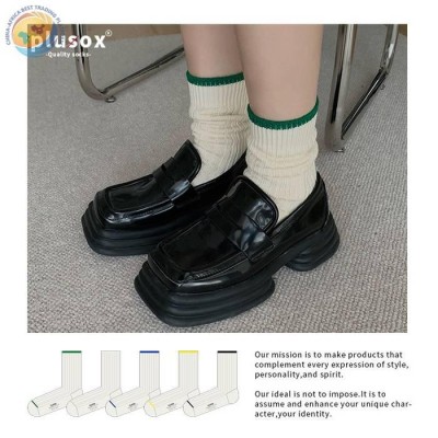 plusox日系原宿复古风松口情侣款中筒粗线袜潮流并线抽条纯色长袜