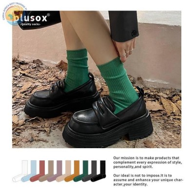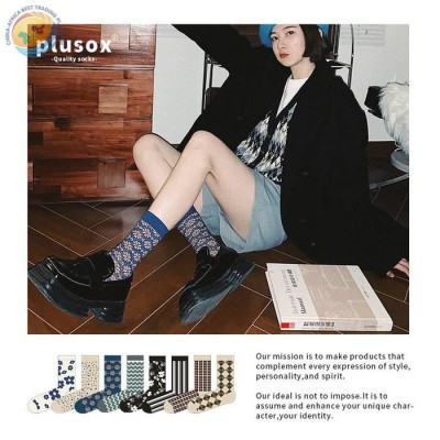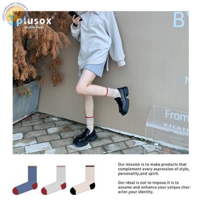 plusox 袜子女中筒袜秋冬季ins潮网红款学院复古英伦风堆堆袜长筒