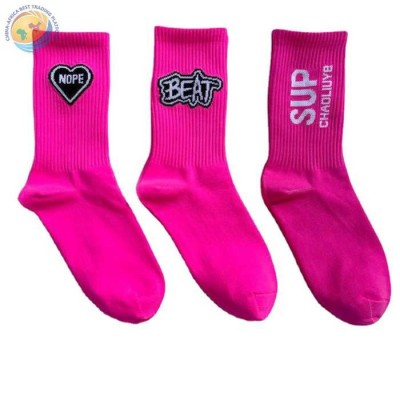 火龙果色袜子亮丽玫红男女中筒潮欧美街头原宿个性滑板学院风长袜