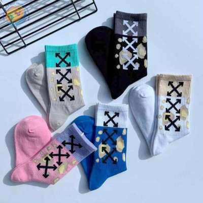 欧美街头情侣潮袜原宿泼墨条纹箭头棉滑板袜