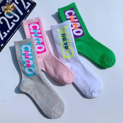 白粉黑紫街头滑板潮流男女纯棉运动中筒袜子