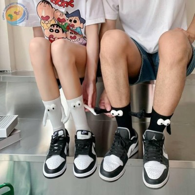 立体大眼睛个性搞怪牵手袜子纯棉黑白