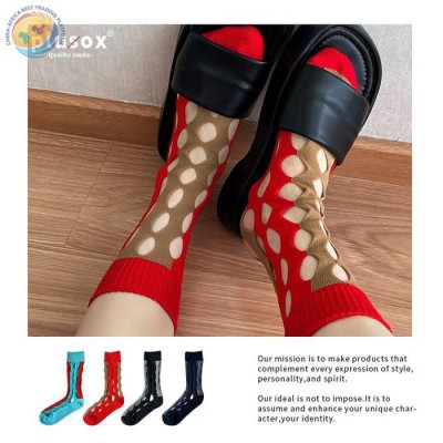 plusox日系潮牌镂空袜 拼接洞洞袜移圈袜堆堆个性时尚中筒女潮袜