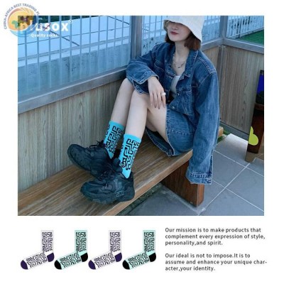 plusox设计无性别字母袜子女街头潮牌中筒袜男ins潮秋季运动长袜