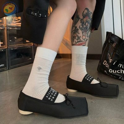 ins潮网红小蜜蜂刺绣袜子女miu走秀纯棉中筒袜