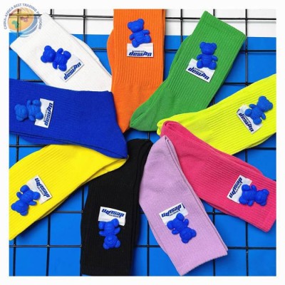 克莱因蓝色小熊网红款袜子女外穿中筒袜绿