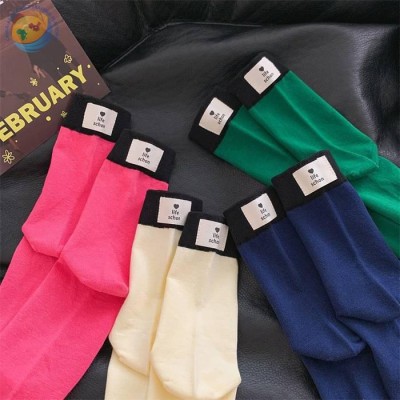 欧货拼色粗线黑白爱心袜子男女纯棉彩色中筒袜