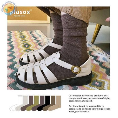 中筒长袜女日本复古气质时尚纯色日系色纺棉