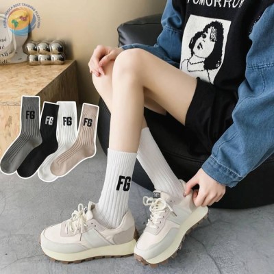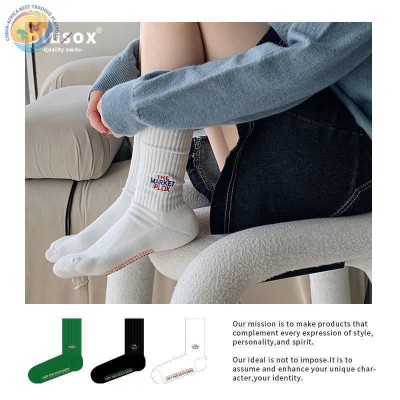 plusox袜子女ins潮牌秋冬中筒袜日系刺绣字母街头学院风简约长袜