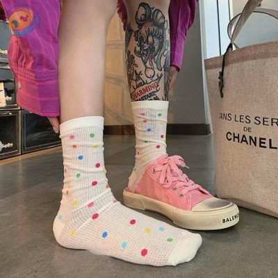 日系彩色波点透气小清新风薄款中筒袜堆堆袜