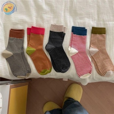 美拉德ins东大门撞色罗口条纹袜秋冬季日系堆堆袜