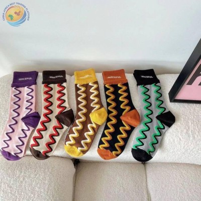 立体线条毛绒毛圈袜子女中筒袜潮男个性彩色条纹