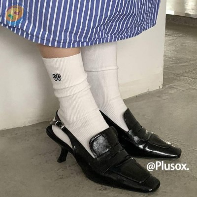 Plusox新款可爱百搭小眼睛袜子女全棉批发春季中筒袜ins潮棉袜女