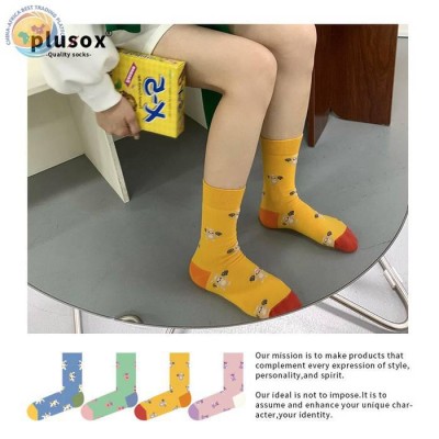 plusox袜子女秋季ins潮日系可爱街头中筒袜春秋卡通潮牌棉 长袜冬