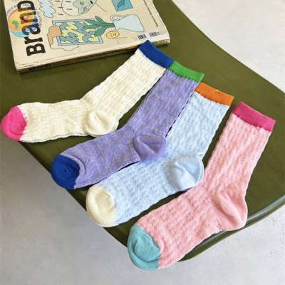 拼色糖果色ins潮泡泡纱宽松日系堆堆袜