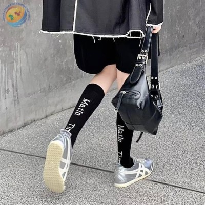 日系简约英文字母纯棉长筒小腿袜潮流纯色女袜
