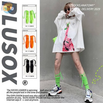 Plusox 秋冬新品洛丽塔交叉绑带袜子女ins吸睛潮袜 小腿袜 中筒袜