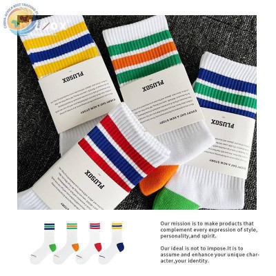 plusox 袜子男中筒袜春夏薄款纯棉条纹ins潮流学院风运动男长袜女