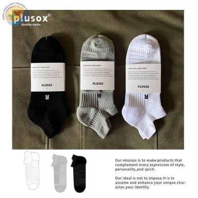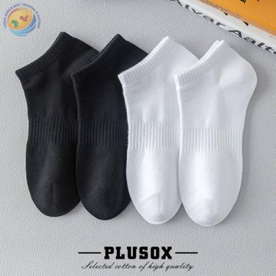 plusox袜子短袜男船袜黑白纯色夏季薄款毛巾纯棉防臭透气运动袜女