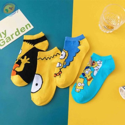 日系潮牌辛普森船袜夏季低帮透气卡通涂鸦短袜男女潮流纯棉短筒袜