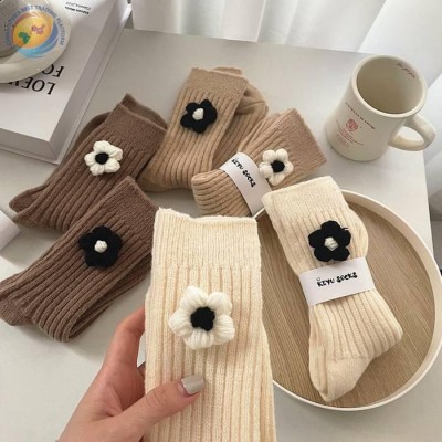 粗线纯色布标堆堆袜女秋冬日系针织雪地靴袜子女纯棉中筒袜毛线袜