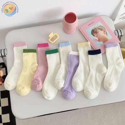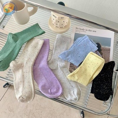 风波点星空中筒袜双针细条男女纯色袜子