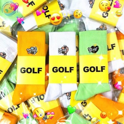 潮牌GOLF字母爱心刺绣图案纯棉中筒袜子
