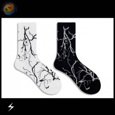 潮牌ins闪电袜子秋冬黑白色欧美街头运动袜