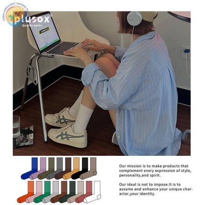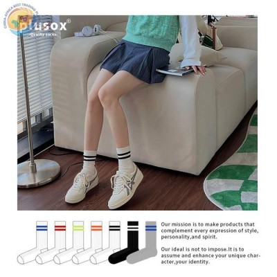 plusox 秋冬季韩版吸汗纯棉袜子女学院风少女两杠百搭ins中筒袜潮