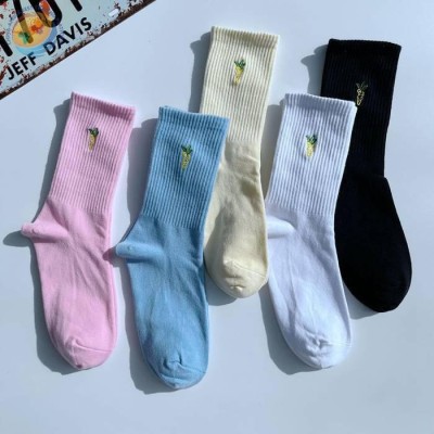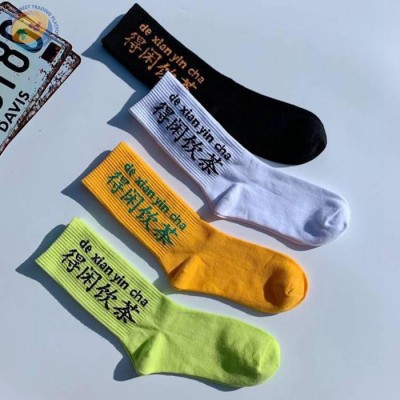 潮ins男女中筒袜子 日系学院风欧美街头滑板创意字母袜运动棉长袜