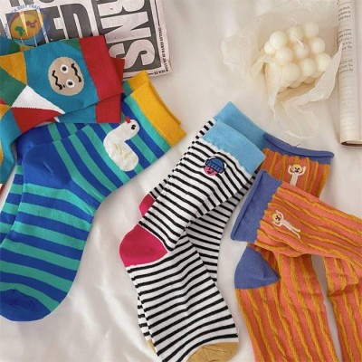 可爱袜子女条纹格子纯棉中筒袜i搞怪丑萌设计袜子