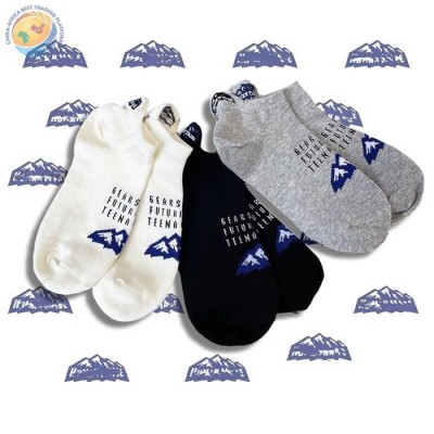 日版潮牌春夏新款雪山字母刺绣船袜纯棉ins