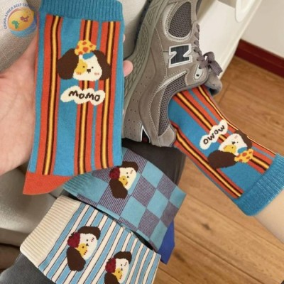 潮牌TB小狗男女中筒袜ins潮经典条纹袜黑白灰个性卡通纯棉袜子