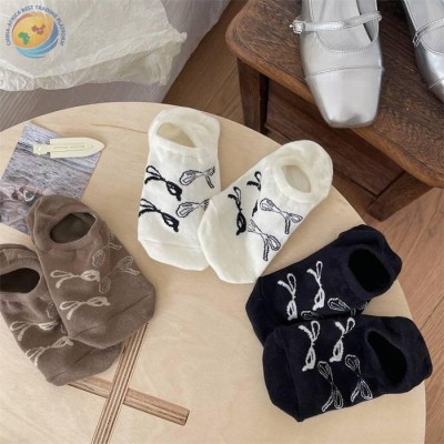 蝴蝶结袜子船袜女韩国ins浅口隐形袜硅胶防滑不掉跟纯色少女jk袜