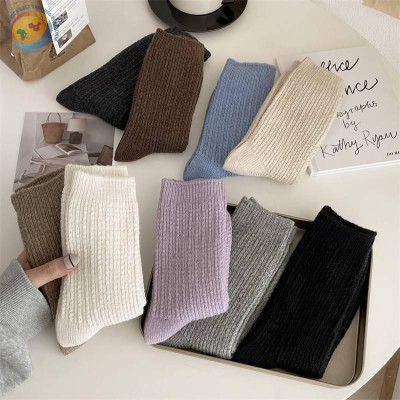 双针粗线羊毛袜女加厚保暖加绒中筒袜子