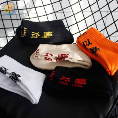 潮牌INS原宿风运动毛巾底以暴制暴中筒棉袜子