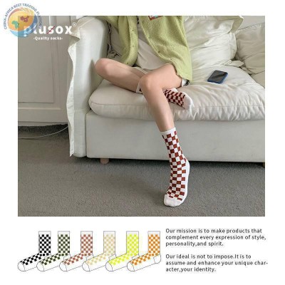 plusox棋盘格袜子女秋冬ins潮毛圈中筒袜潮流街头滑板潮牌男长袜