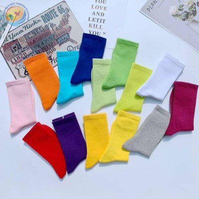 韩国INS原宿港风 纯色黑白黃彩色中筒棉袜子男女情侣简约长袜批发