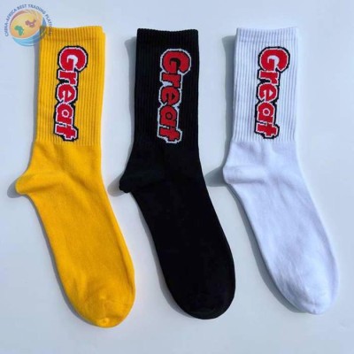 大码袜子 百搭黑白黃潮ins网红男中筒街头欧美嘻哈滑板长棉袜批发