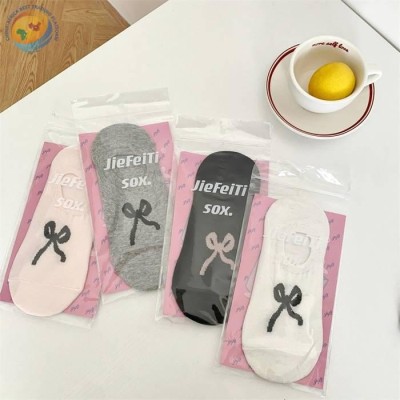 黑白灰蝴蝶结船袜夏季薄款隐形袜ins