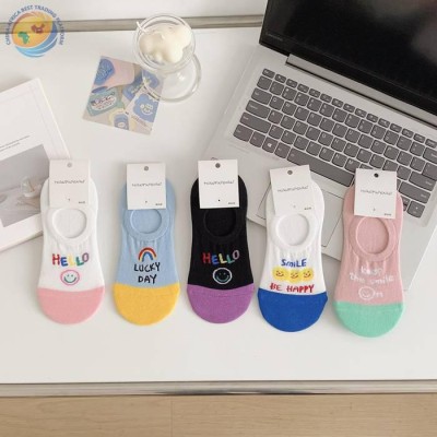 船袜韩国拼色字母笑脸男女隐形袜日系smile彩虹浅口薄款纯棉袜子