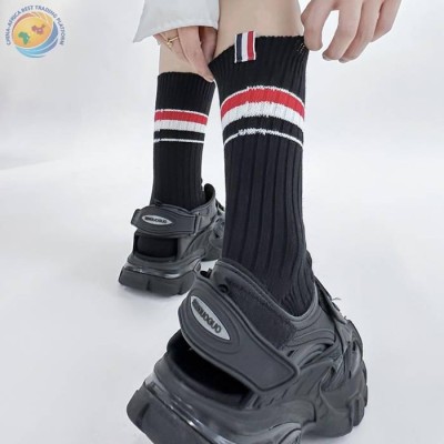 欧美设计师潮牌TB有标粗线袜子中筒小腿纯棉长袜