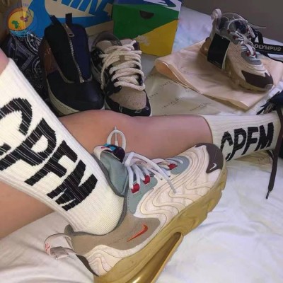 条纹运动潮牌个性文字男女街头滑板棉袜