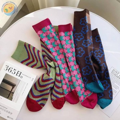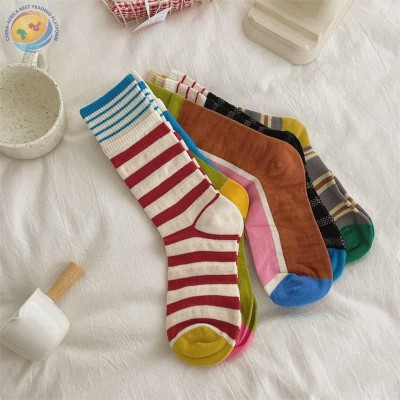 Cotton midtube socks street trend color matching double ribbed couple socks