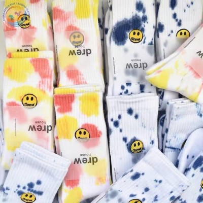 Trendy Smiley tie-dye splash-ink socks Bieber\'s same mid-tube cotton socks