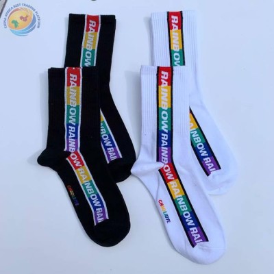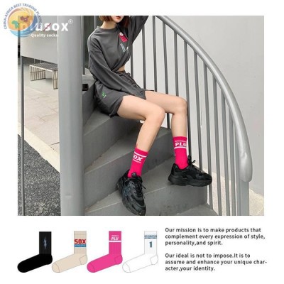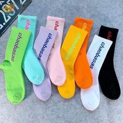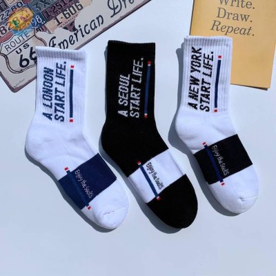 字母运动袜子定制贴牌ins潮牌滑板嘻哈欧美文提花男中筒长袜SOCKS