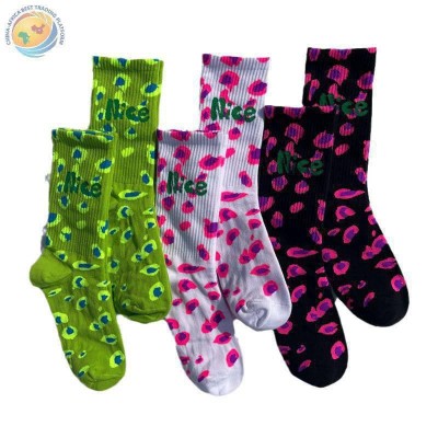 绿色豹纹篮球袜子男女中筒个性潮健身运动欧美街头字母情侣长棉袜