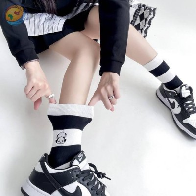 条纹字母panda男女运动纯色纯棉中筒袜子